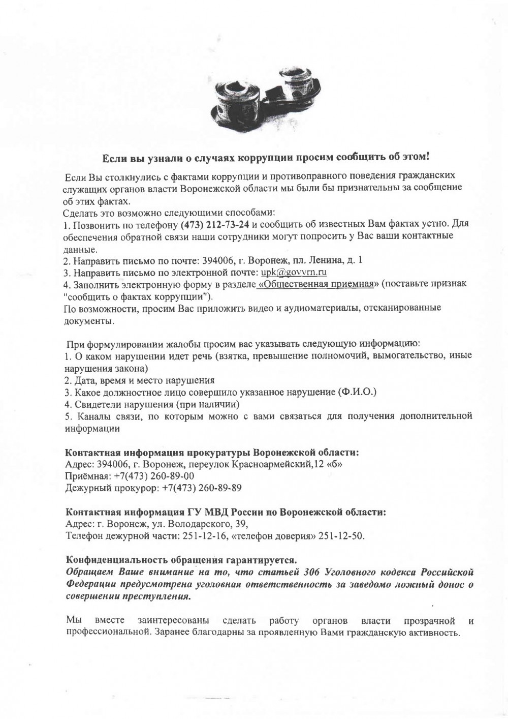 ЕСЛИ ВЫ УЗНАЛИ О СЛУЧАЯХ КОРРУПЦИИ ПРОСИМ СООБЩИТЬ ОБ ЭТОМ!